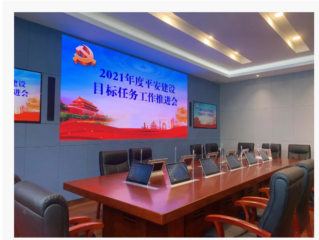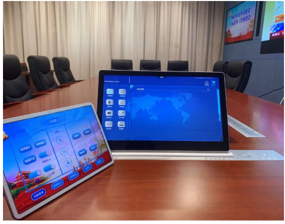 四川某單位需打造一個可以“一室多用”的智能會議室,這里長12米、寬8米、高4米,常用于舉行多人視頻會議,兼用作12人的圓桌會議,故考慮并選用了BOSCH專業音頻設備,從無紙化、中控、音響擴聲三方面著手。