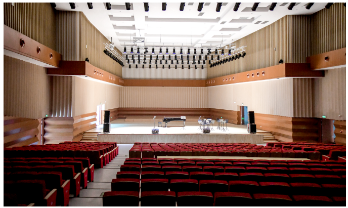 “琴島”音樂(lè)廳建筑面積2100平方米,內(nèi)部結(jié)構(gòu)呈扇形狀,扇形音樂(lè)廳的天頂呈等勢(shì)的遞進(jìn),目的是令聲學(xué)能量均勻擴(kuò)散。在這種音樂(lè)廳中,聲樂(lè)的直接信號(hào)更容易送達(dá)。