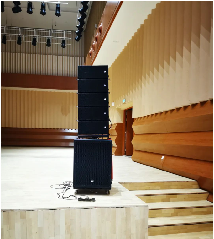 琴島”音樂(lè)廳音響系統(tǒng)采自意大利進(jìn)口品牌RCF音響,HDL有源線(xiàn)陣列系統(tǒng),舞臺(tái)返聽(tīng)為兩組ART300有源系列音箱。