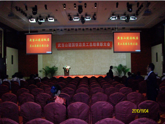 酒店宴會(huì)廳集合了會(huì)議、晚會(huì)表演為一體的多功能舞臺(tái),燈光要求既能滿足會(huì)議攝像要求,又要能滿足舞臺(tái)表演要求。需要基礎(chǔ)光和舞臺(tái)效果燈具的結(jié)合使用,針對(duì)主席臺(tái)面光、頂光、側(cè)光、耳光和逆光的布置,可選用高顯色指數(shù)的LED影視平板柔光燈和LED影視聚光燈或LED數(shù)字聚光燈。