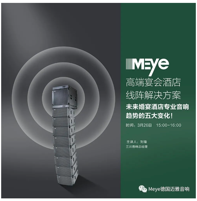 近年來,Meye音響專注于五星級酒店、 高端婚慶主題宴會酒店、高端婚禮藝術(shù)中心領(lǐng)域,打造標(biāo)桿化、系統(tǒng)化、高效化的專業(yè)擴音系統(tǒng),已經(jīng)成為中國宴會酒店音響知名品牌。